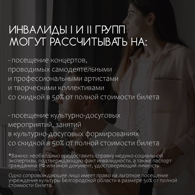 При организации платных мероприятий (услуг) учреждениями культуры Белгородской области предоставляются следующие льготы: