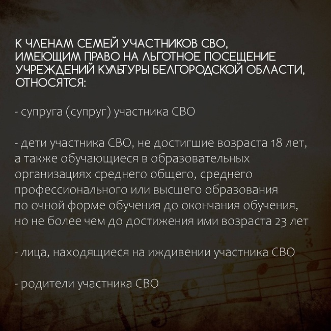 К лицам, имеющим право на льготное посещение учреждений культуры Белгородской области, относятся: